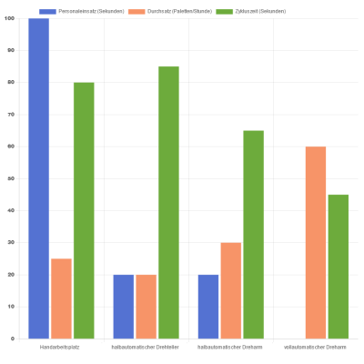 Zudem kann jeder Wickler auch als Doppelkopf gefertigt werden, um einen größtmöglichen Durchsatz zu generieren (bisher gemessener Maximaldurchsatz bei einem Kunden im Produktionsbetrieb: 110 Paletten pro Stunde). Dabei bleiben die Anlagen auch von den Kosten her attraktiv, da wir selbst Sonderlösungen durch unser Baukastensystem günstig produzieren können.