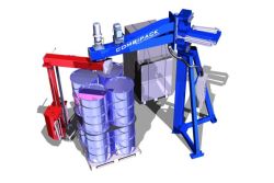 Der Wickler für den größtmöglichen Palettendurchsatz. Durch Einsatz eines Doppel-Dreharmes und einer zweiten Schweisseinheit wird die Durchsatzleistung maximal gesteigert. Um die einlaufenden Ladeeinheiten staubdicht einwickeln zu können, ist direkt am Maschinengestell ein Deckblattaufleger installiert (identisch zum Modell C5.2)