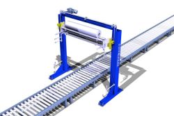 Die gesamte Maschine ist auf Linearführungen verfahrbar, um Langgüter, wie z.B. Möbel, Werkbänke oder Rohrprofile einzustretchen. Packgutlängen von bis zu 6m sind hiermit problemlos realisierbar.